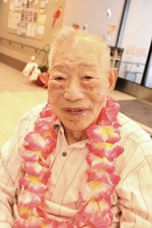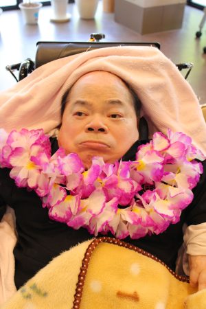 利用者さんにはレイ🌺を付けて