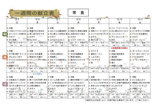 🍚一週間の献立表🥢 (R7/10/5~10/11)