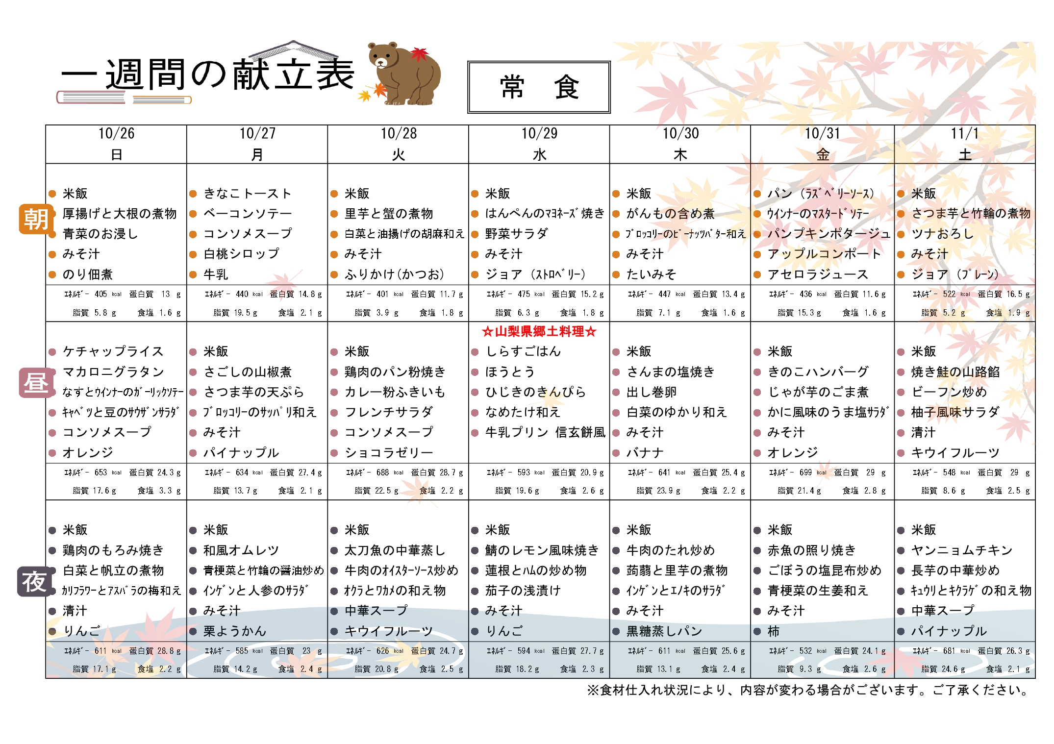 🍚一週間の献立表🥢(R7/10/26~11/1)