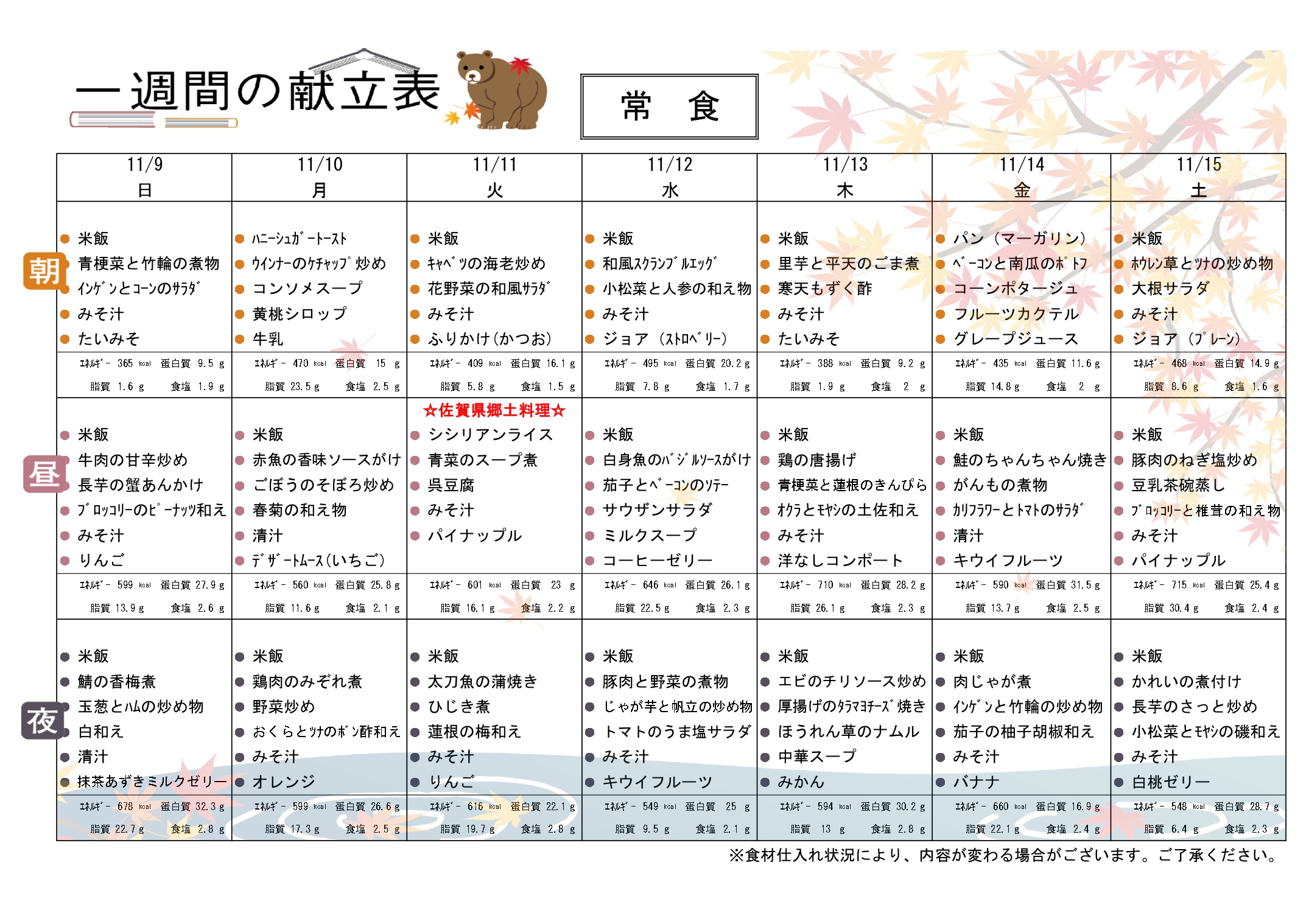🍚一週間の献立表🥢(R7/11/9~11/15)