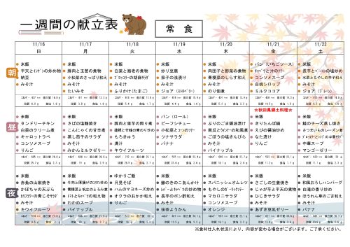 🍚一週間の献立表🥢(R7/11/16~11/22)