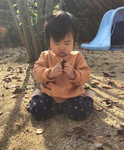 ポカポカ陽気の中で、落ち葉みーつけた👀✨