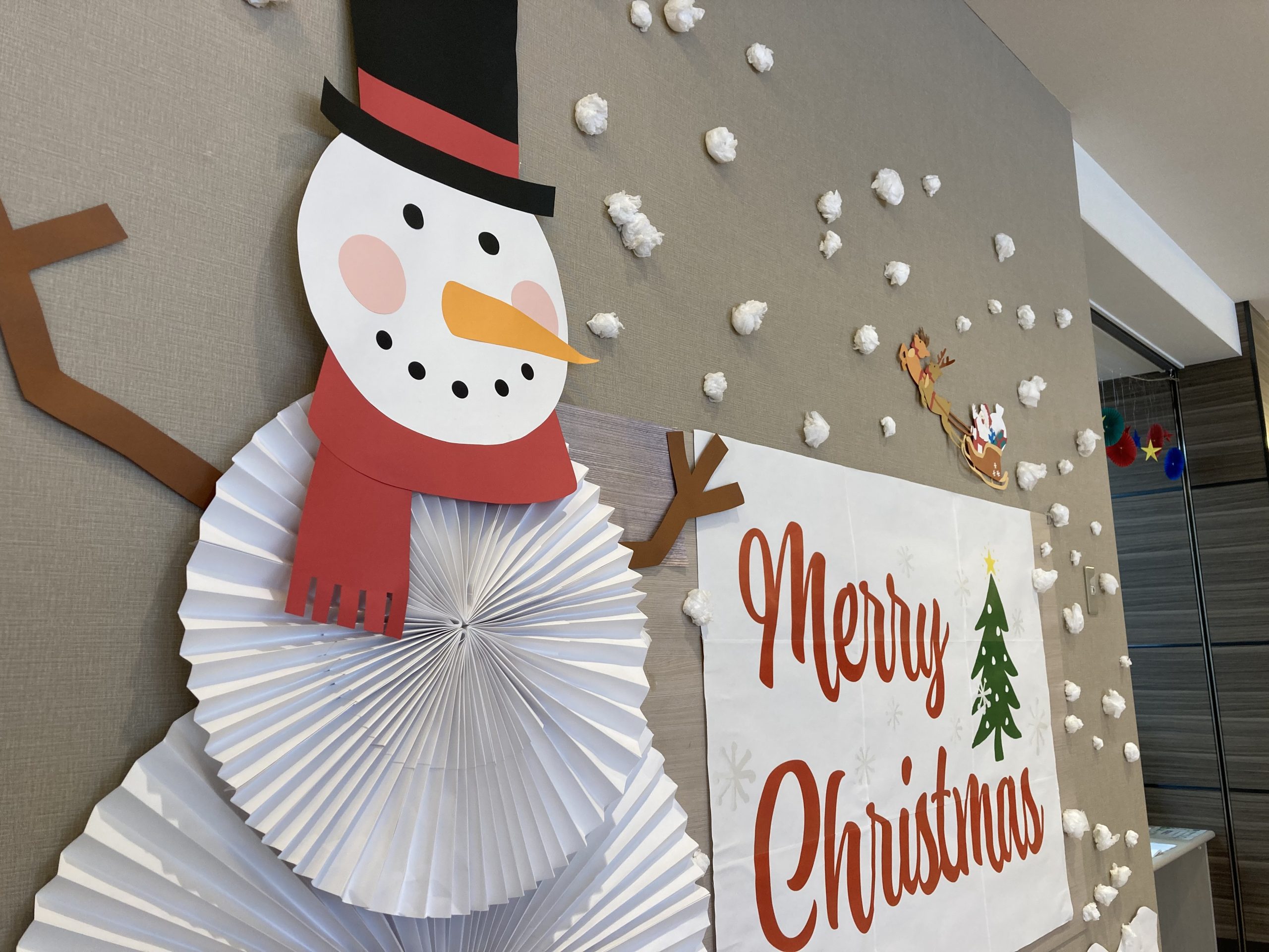 クリスマスが近づいてきて、館内に大きなクリスマスツリーと雪だるまがやってきました🎅