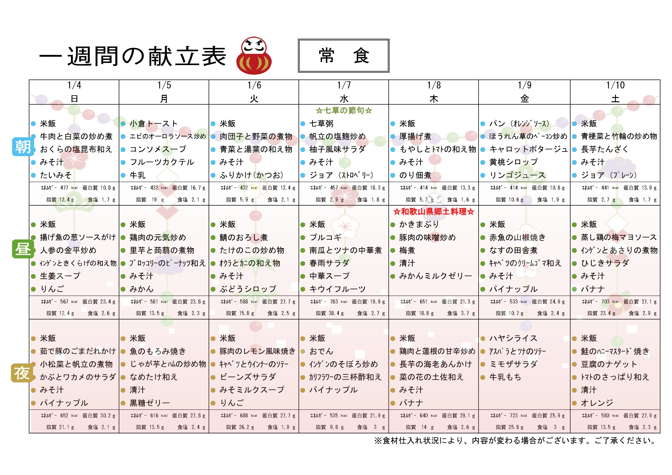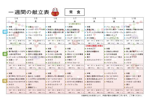 🍚一週間の献立表🥢(R8/1/4~1/10)