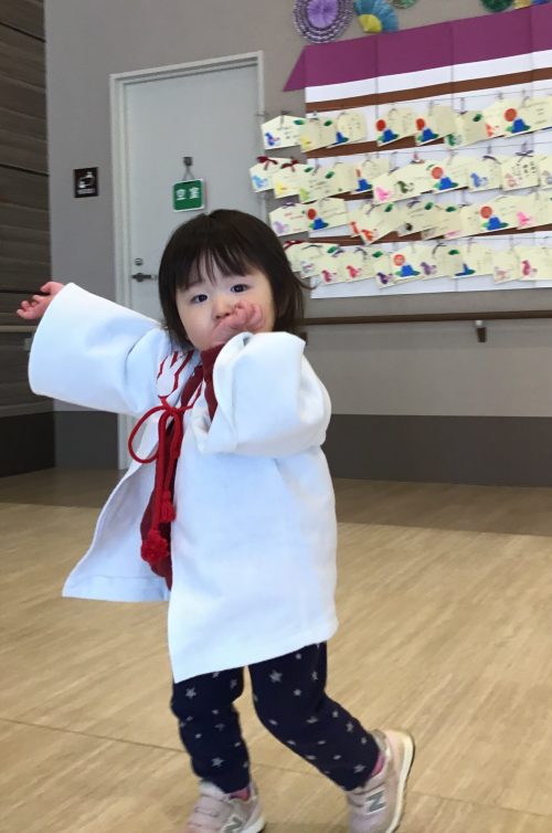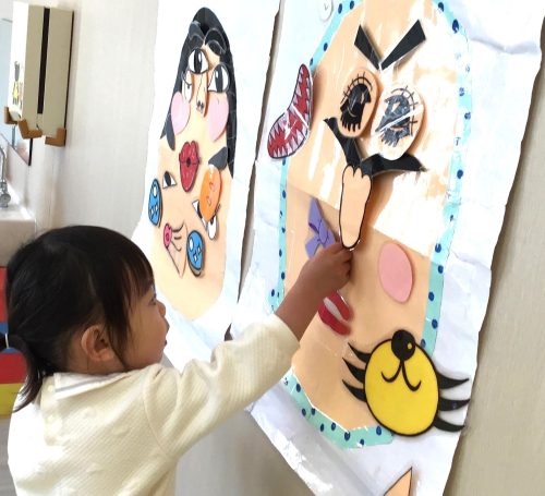 みんなで一緒に福笑い。リボン🎀どこにつけてあげようかな?