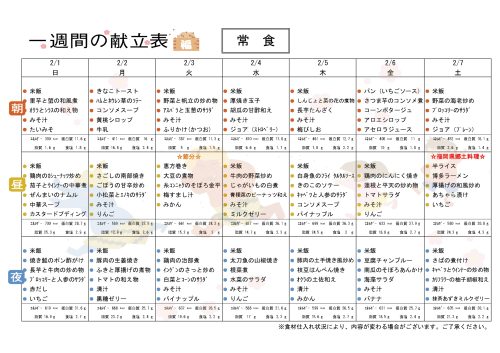 🍚一週間の献立表🥢(R8/2/1~2/7)